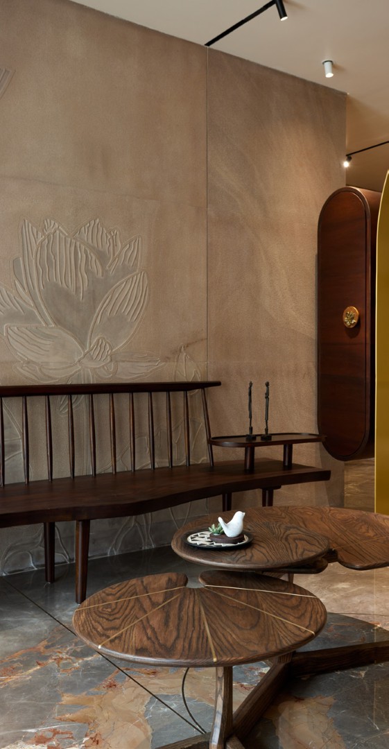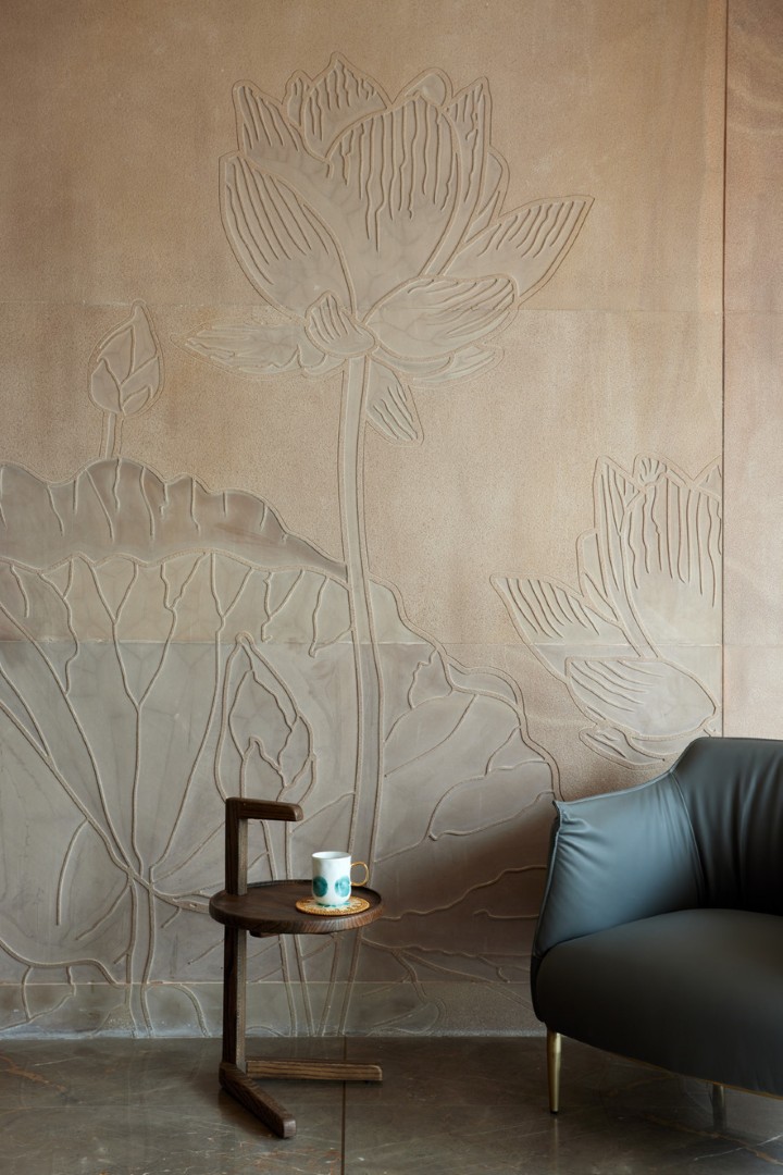 “In the lowered centre of the home, with paths of layered stone, Where a spot for brass-lit lamps is artfully sown.The soul of music and symphony of notes are deeply felt,Where the family unites and in joyful celebration, they melt.” LobbyThe lobby acts as the heart of the home, where family members gather to connect and celebrate togetherness. Designed with layered stone paths leading to strategically placed brass-lit lamps, this area exudes warmth and hospitality. The thoughtful layout encourages movement while fostering an environment rich in music and laughter. This central gathering spot reflects the essence of family life; it is where memories are made and shared. The
