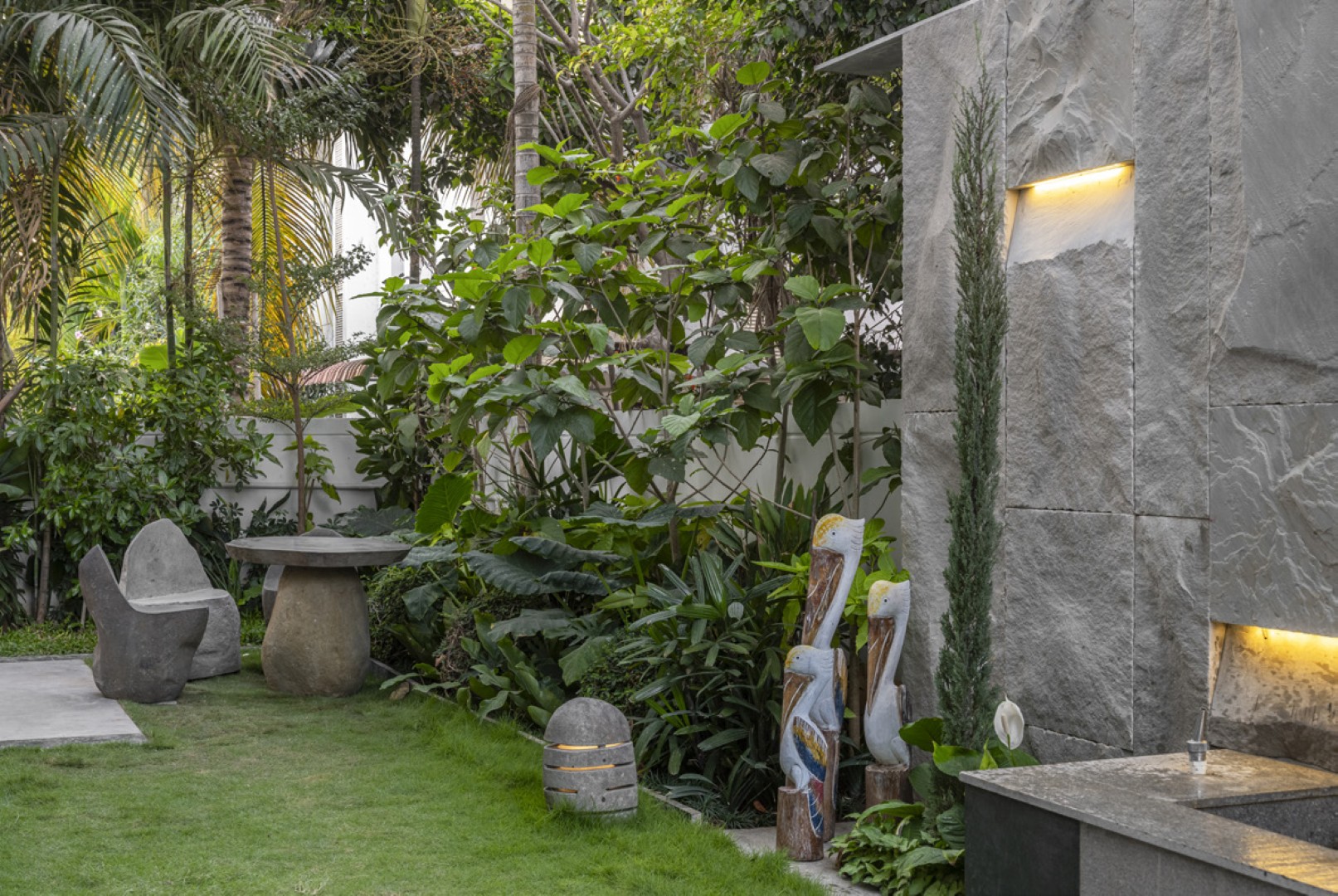 The landscape surrounding Villa 192 is a carefully curated blend of nature and architecture, seamlessly integrating design with the environment. Fountains serve as focal points, creating soothing sounds that enhance the serene atmosphere. Lush greenery envelops the villa, offering shade, privacy, and a habitat for biodiversity. The use of natural stones in pathways and seating areas ensures that the outdoor spaces are both functional and visually appealing, inviting residents to immerse themselves in the beauty of their surroundings.